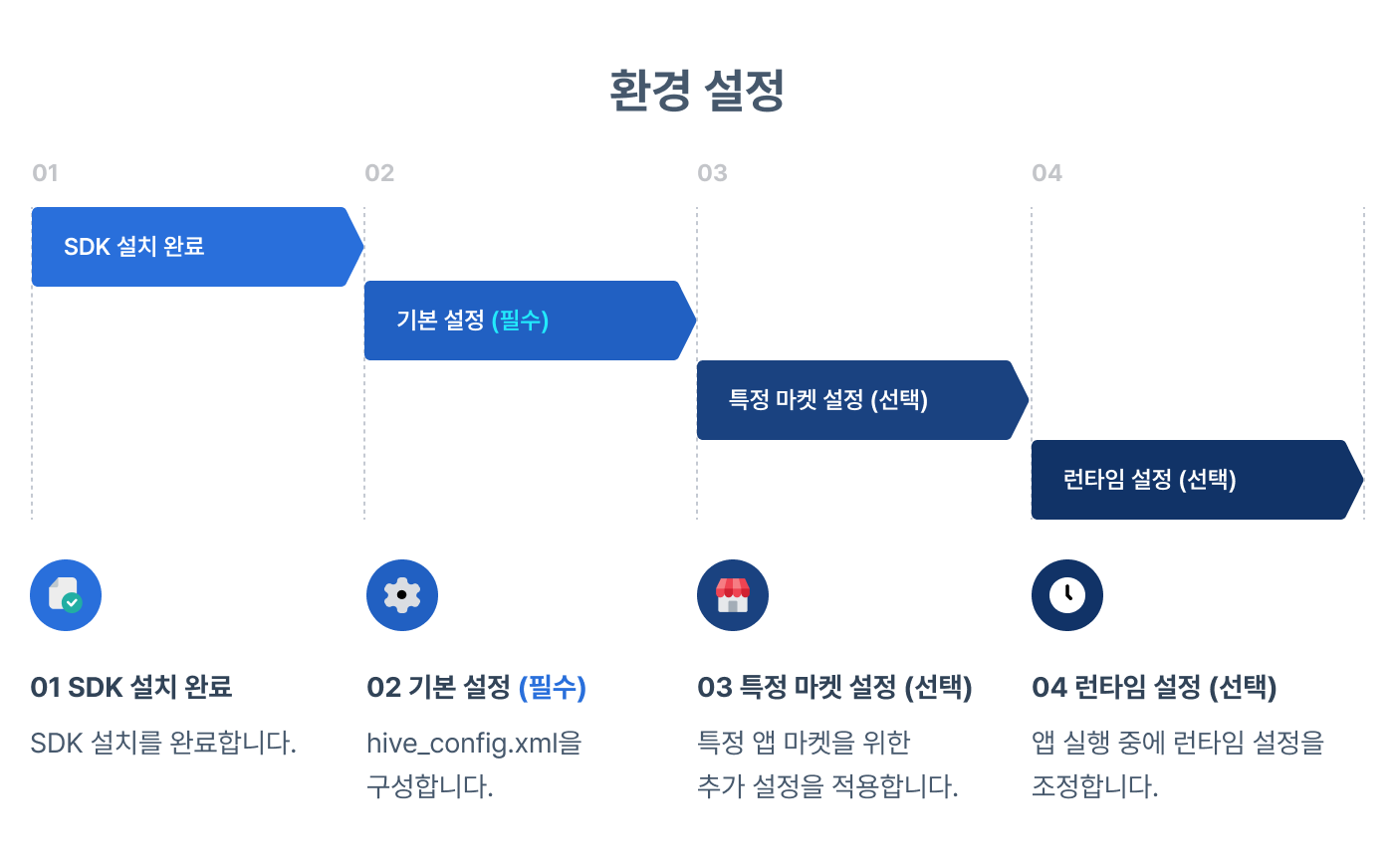 Hive SDK 설치부터 앱 배포까지 전체 과정을 요약하면 아래와 같습니다.