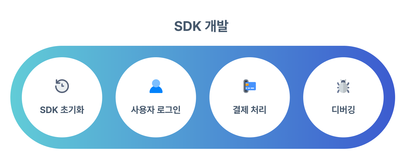 SDK 초기화는 SDK 기능들을 실행하기 위한 최초 준비 단계입니다. SDK 코드 흐름에서 초기화는 가장 먼저 실행되며, 초기화가 완료된 후에 인증, 결제, 프로모션 등 각 SDK 기능을 사용할 수 있습니다.
