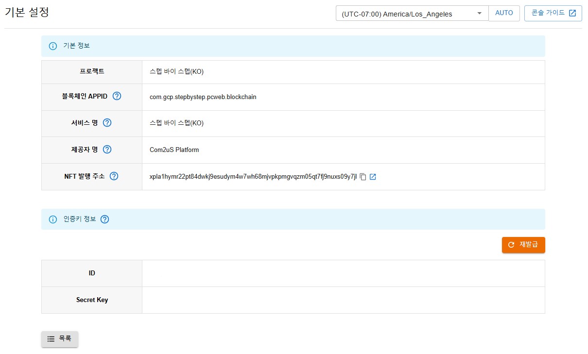 - 인증키 정보 : 블록체인 API를 호출하기 위해 필요한 정보입니다. 프로젝트 생성 시 자동으로 발행되며, 해당 정보로 연동을 진행합니다. 재발급 시, 연동 정보도 업데이트 해야 합니다.