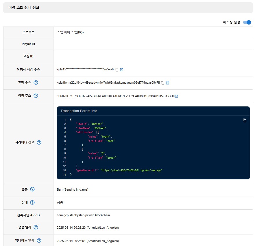 • 요청 ID : 해당 트랜잭션의 고유 요청 ID입니다.