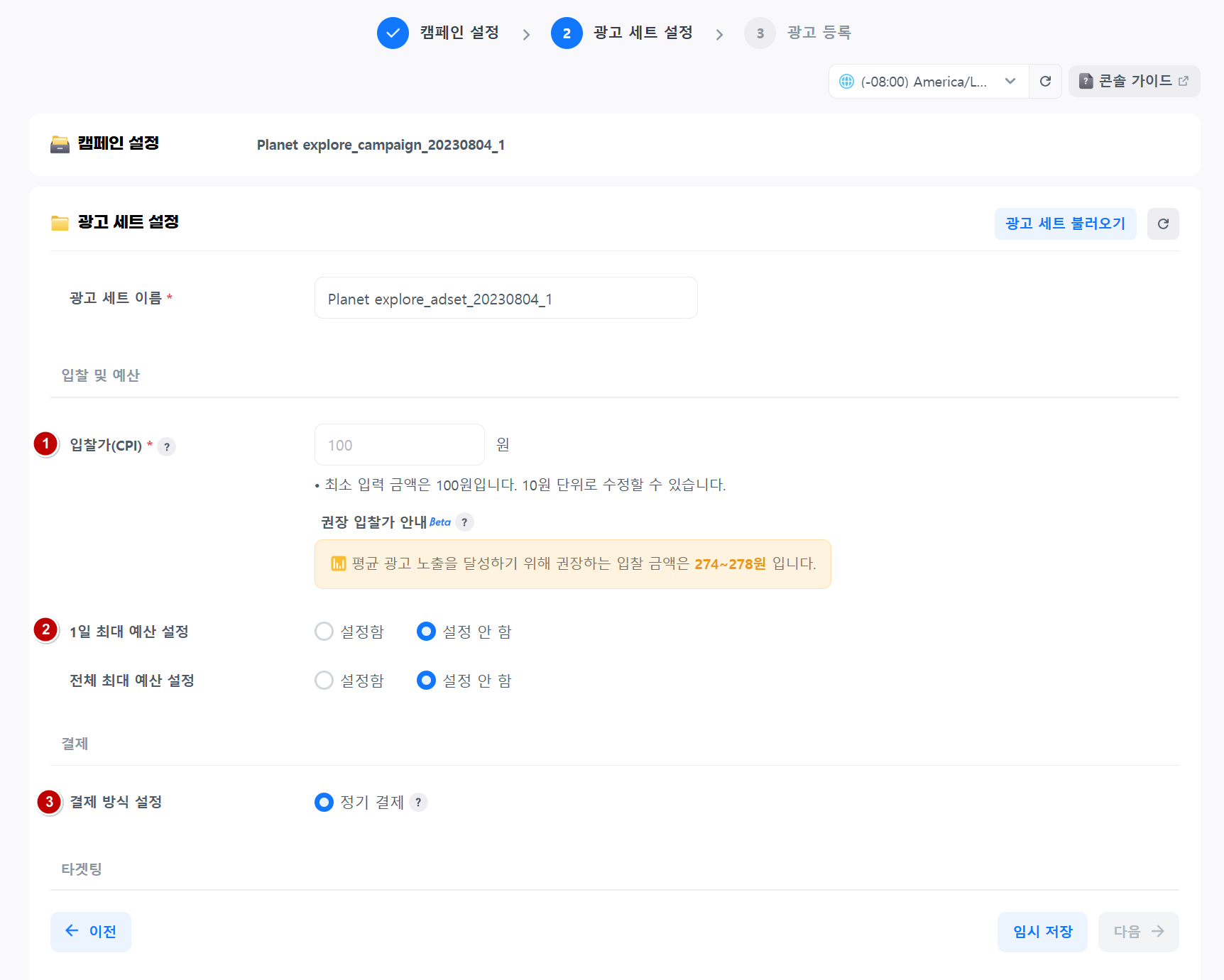 2.광고 세트 설정¶
