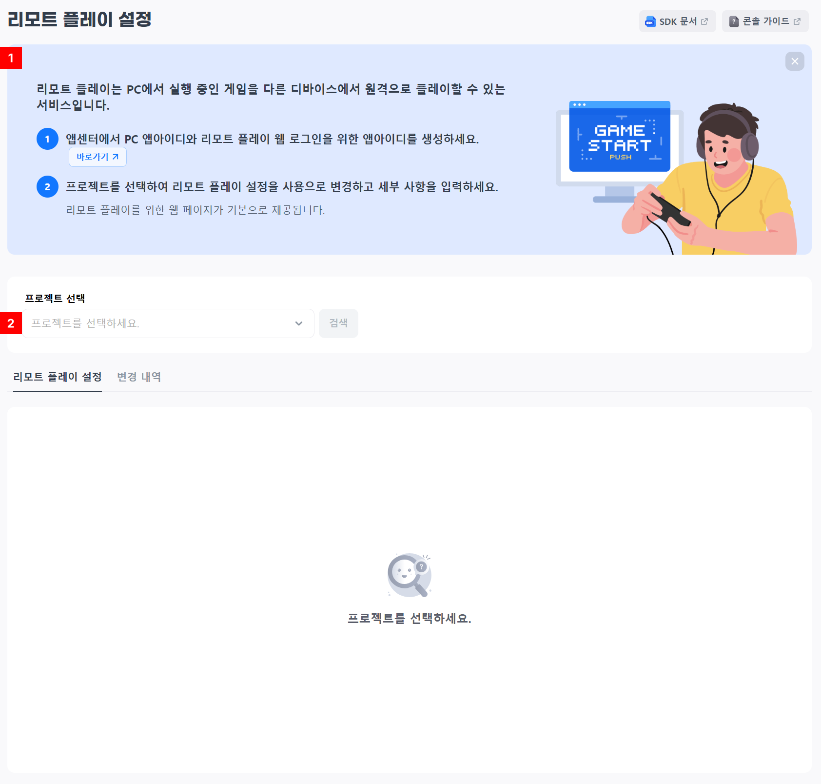 리모트 플레이 설정 기본 화면¶
