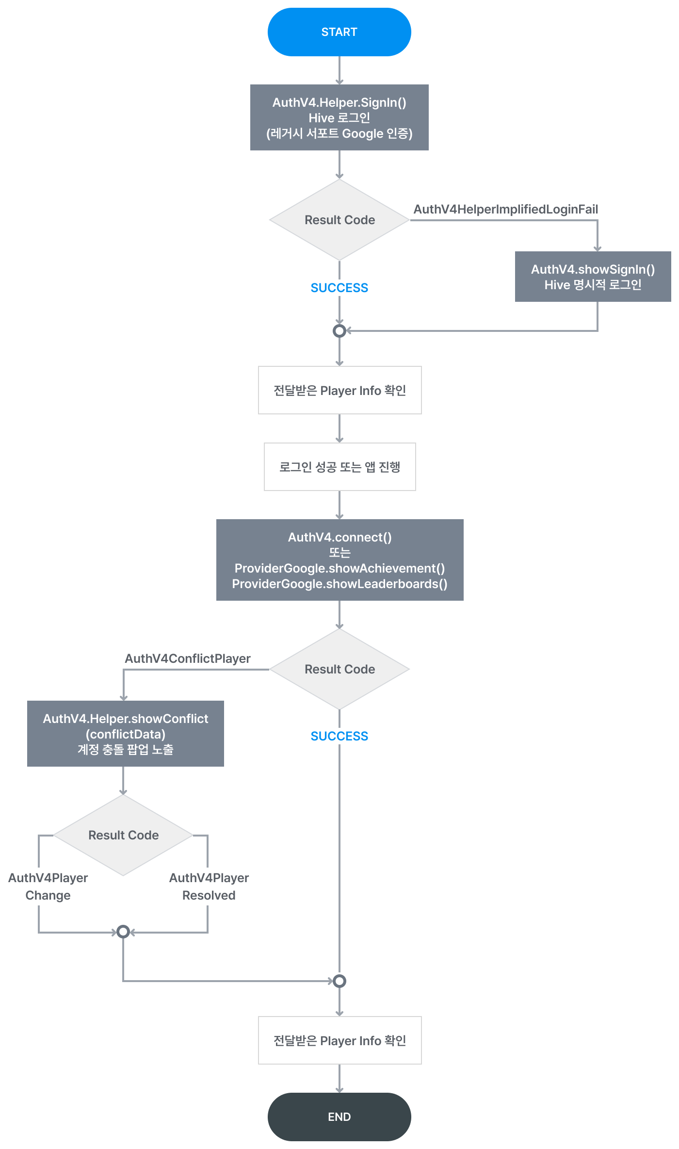 Authv4Helper 는 로그인과 관련된 일련의 과정을 수행하며, 응답 값에 따라 적절한 화면으로 이동하도록 구성하는 클래스입니다.