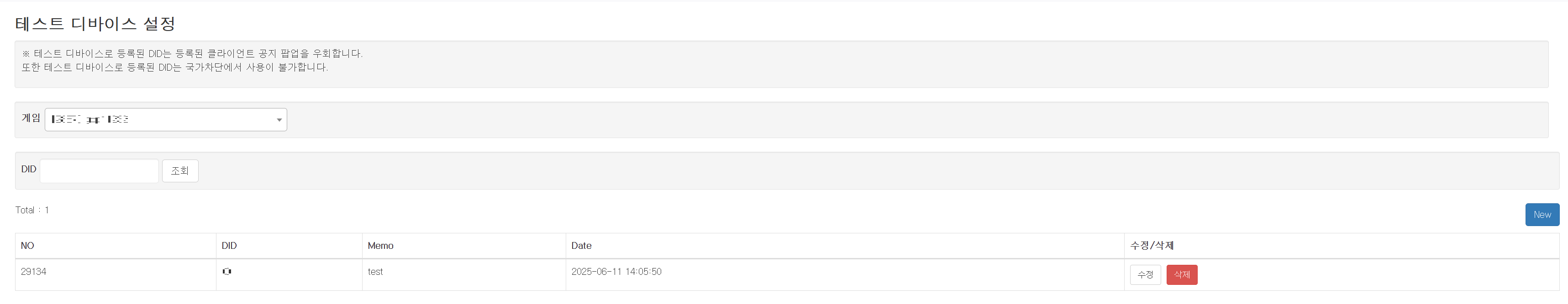 - 상용 환경에서 일반 사용자와 동일하게 공지 팝업을 확인하려면 반드시 테스트 IP 및 디바이스 등록을 삭제해야 합니다.