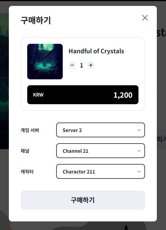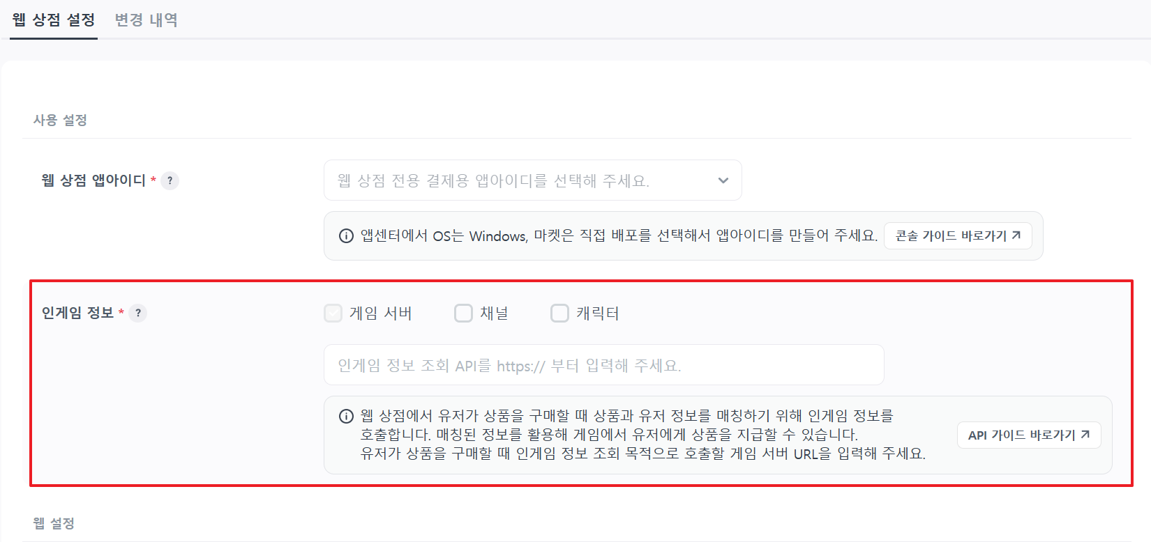 Hive 커뮤니티와 웹 상점을 이용할 때, 웹 상점에서 구매하기 UI를 구현하려면 아래와 같이 접속한 사용자의 앱 서버, 채널, 캐릭터 정보가 필요합니다.
