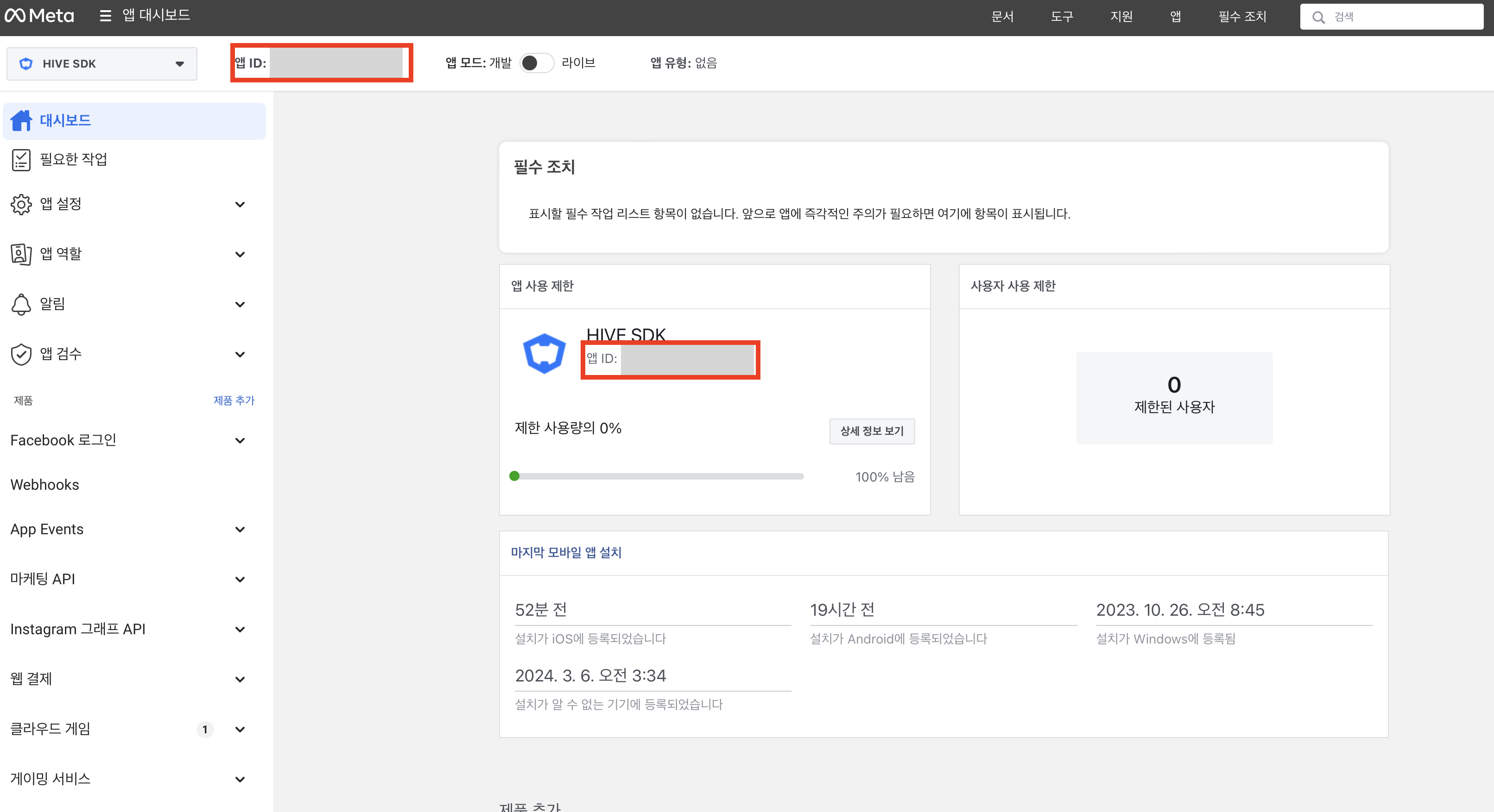 Facebook AppId 및 클라이언트 토큰 설정(Facebook v13 이상 필수)을 위해 설정을 추가합니다. Facebook 클라이언트 토큰은 Facebook 콘솔에서 앱 설정 > 고급 설정을 참고하세요.
