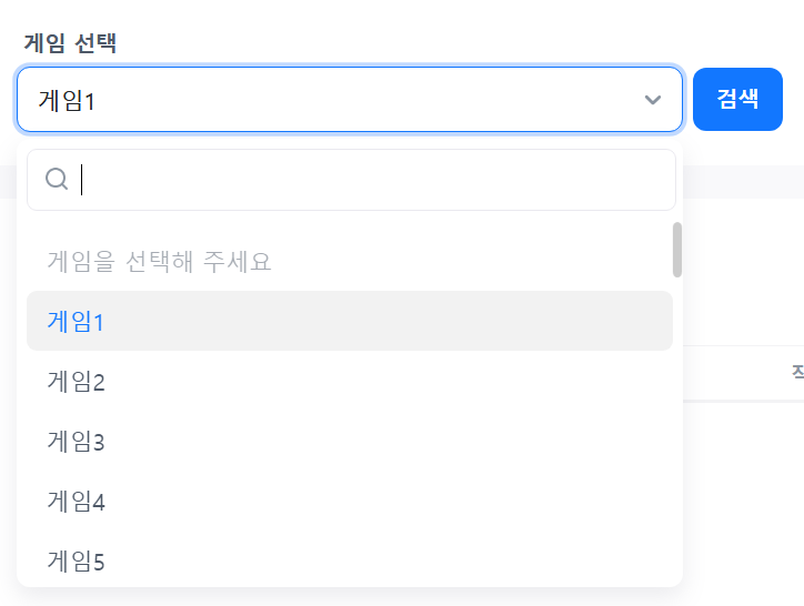 - 게임 선택 후 검색을 클릭 하시면 설정되어있는 게임별 리스트 확인이 가능합니다.
