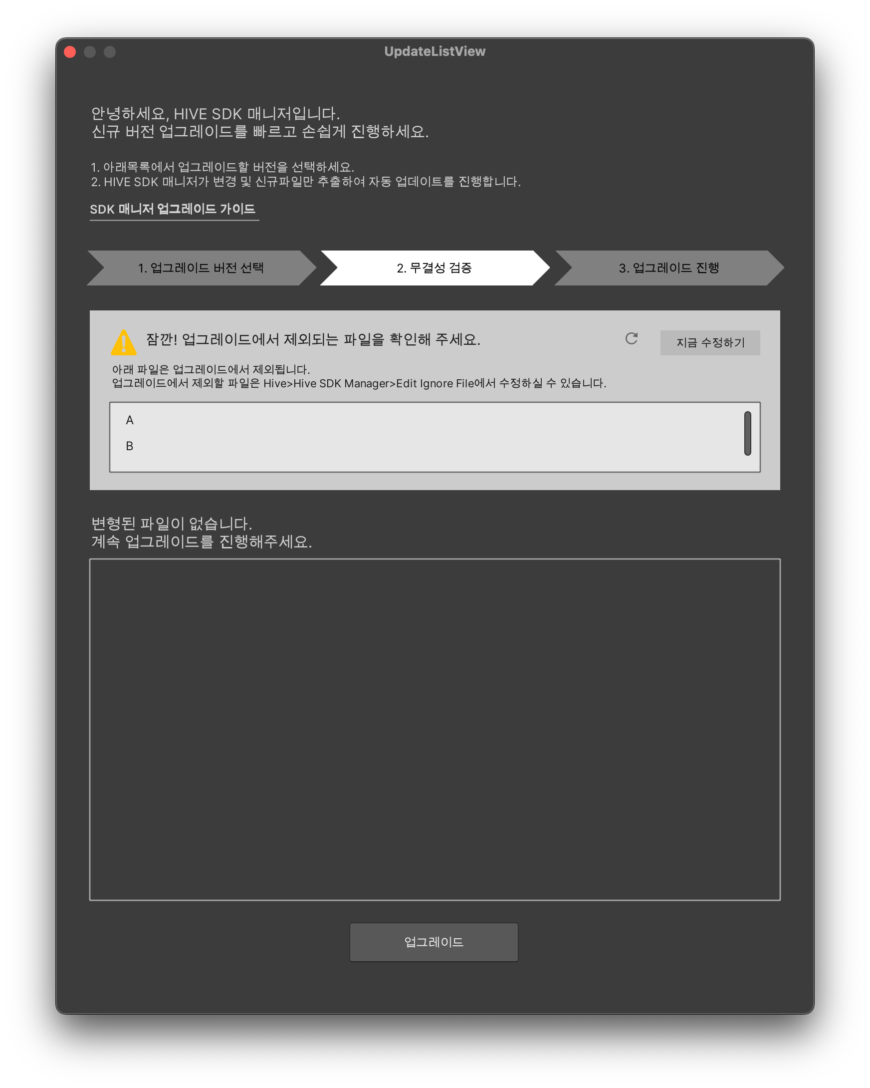 SDK 업그레이드 무결성 검증 화면