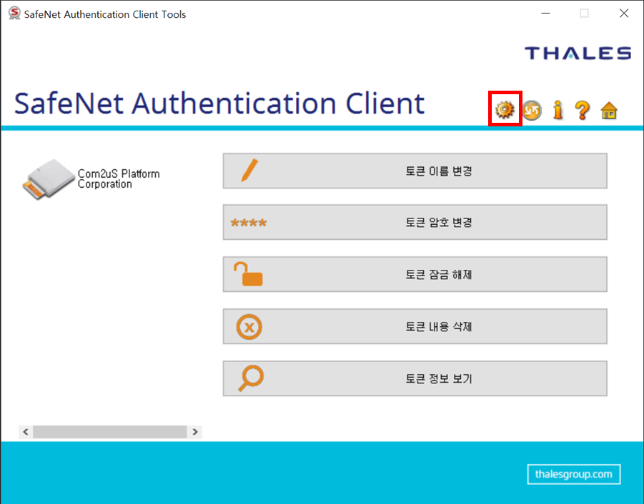 4. SafeNet Authentication Client Tools 화면에서 아래와 같이 연결한 동글 이름이 보이는지 확인합니다.