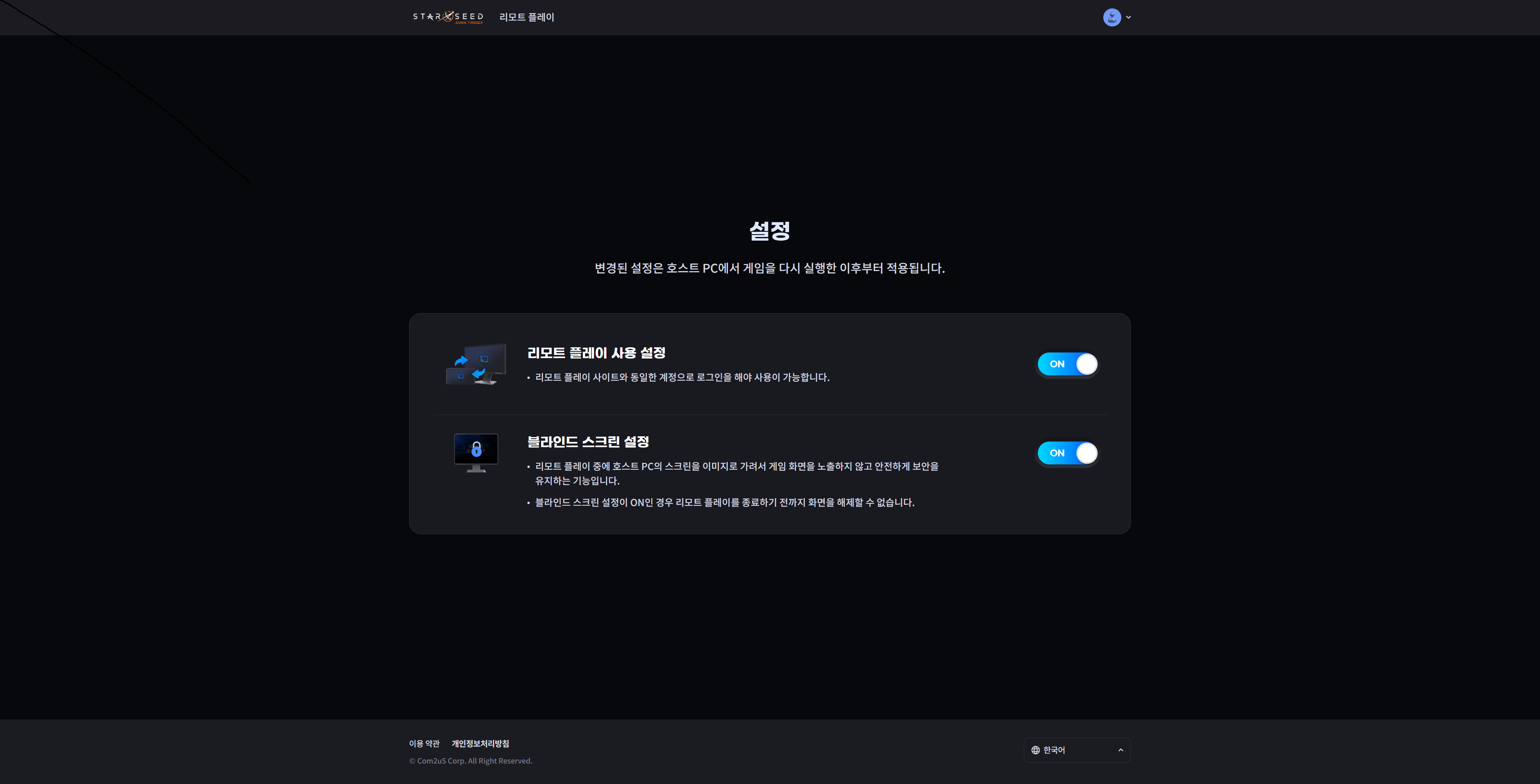 플레이 정보 보안: 리모트 플레이 진행 중에는 블라인드 이미지를 통해 호스트 PC의 플레이 정보가 노출되지 않기 때문에 보안에 안전한 게임 환경을 갖출 수 있습니다.