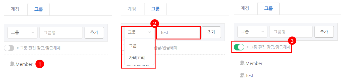 [3] '그룹 편집 잠금/잠금 해제' 토글 버튼을 On으로 설정한 후 그룹을 수정하고, 수정이 완료 후 토글 버튼을 Off로 설정하면 변경 사항이 저장됩니다.