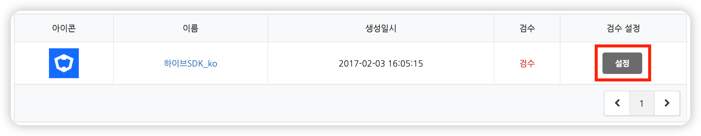 검수 설정할 프로젝트를 검색한 후, 설정 버튼을 클릭합니다.