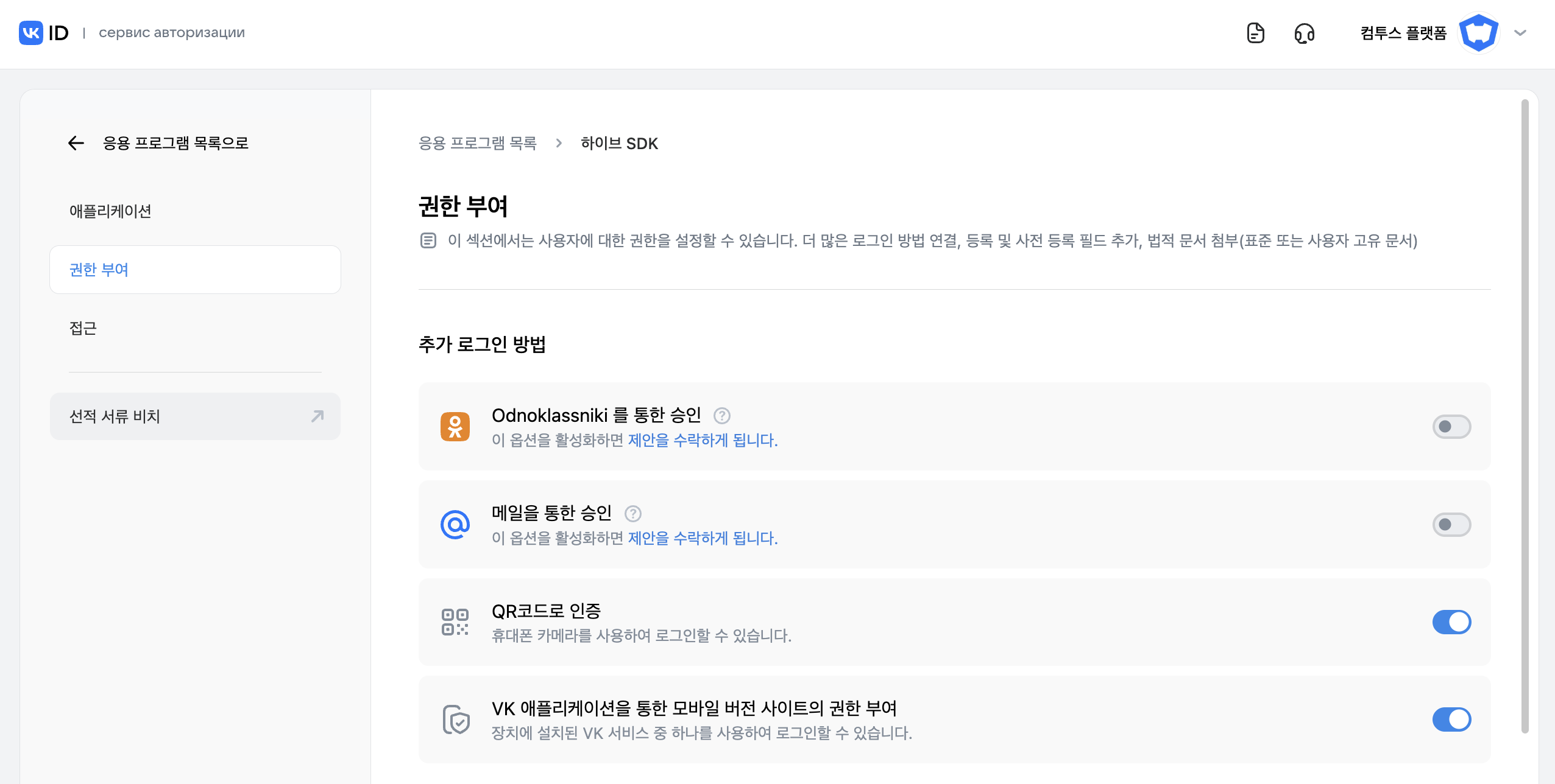 VK IdP 권한 부여 > 추가 로그인 설정¶