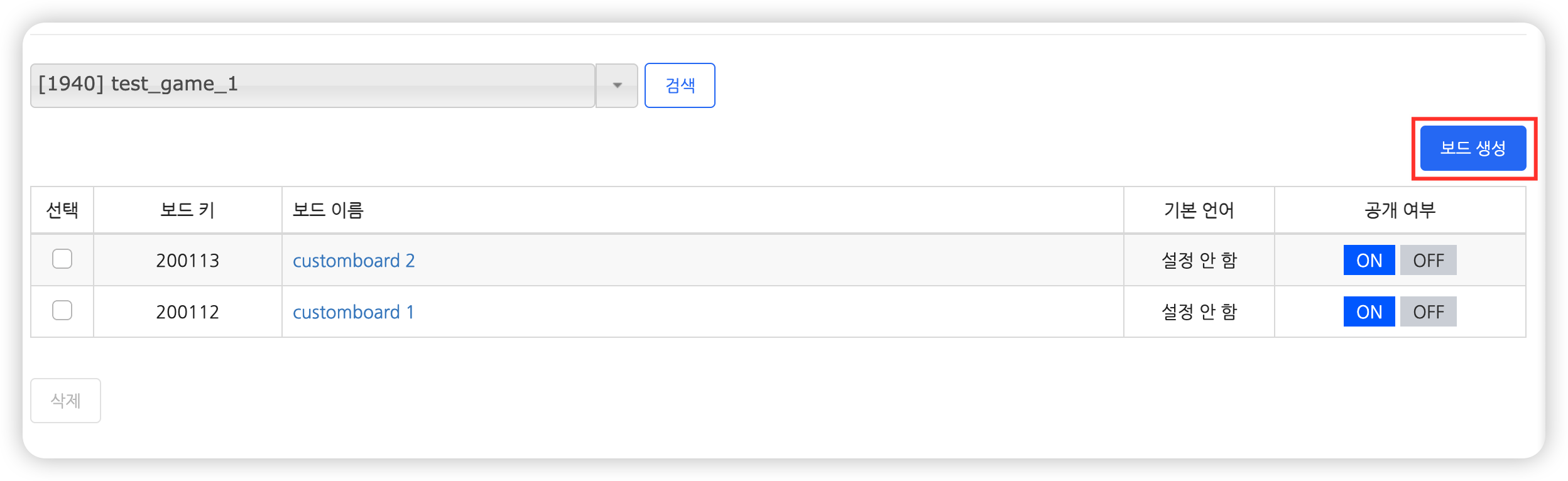 - OFF : 노출할 수 없는 보드입니다. 게임에서 커스텀보드를 호출해도 노출되지 않습니다.