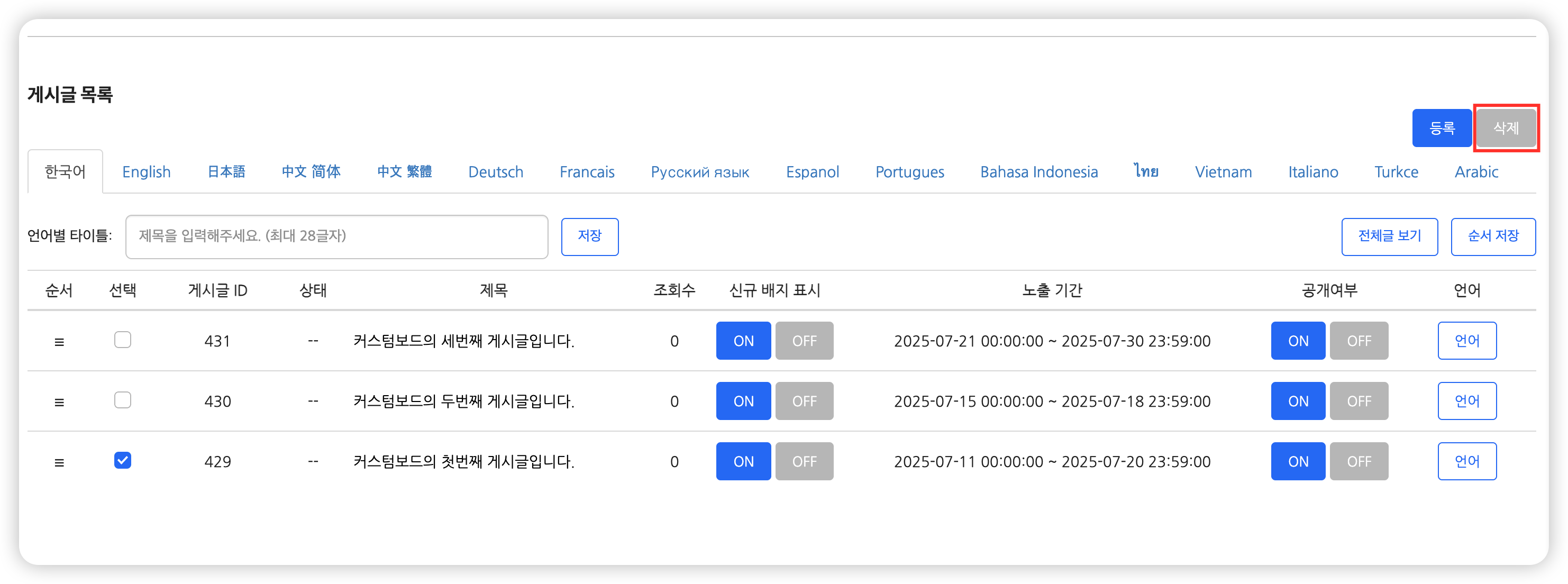 - 예시_한국어 탭에서 ID가 123인 게시글을 삭제하면, 영어탭에서도 ID가 123인 게시글이 삭제됩니다.