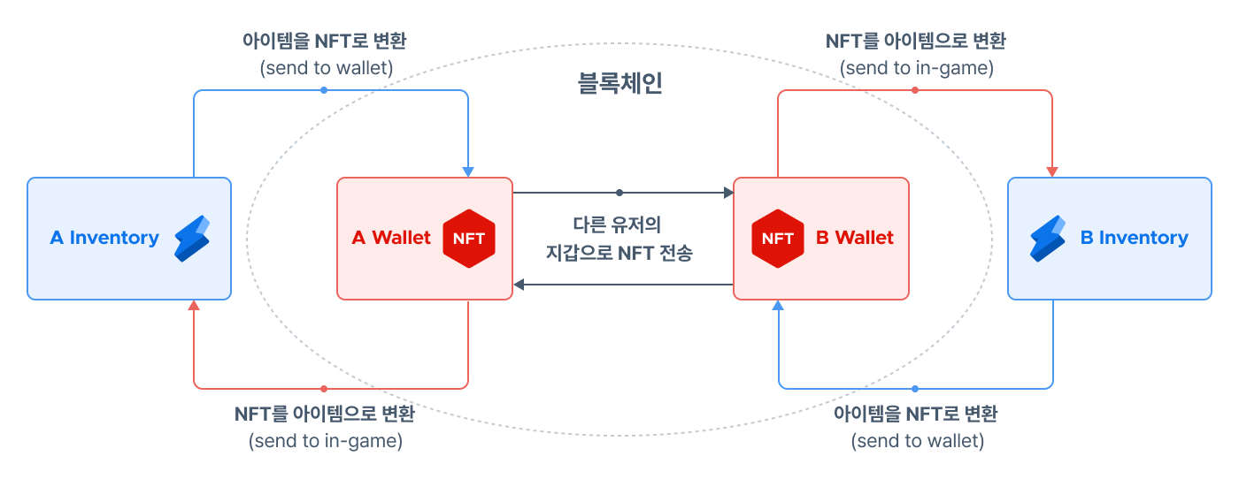 - 유저가 지갑에 보유한 NFT를 다시 게임 아이템으로 변환해 게임으로 전송