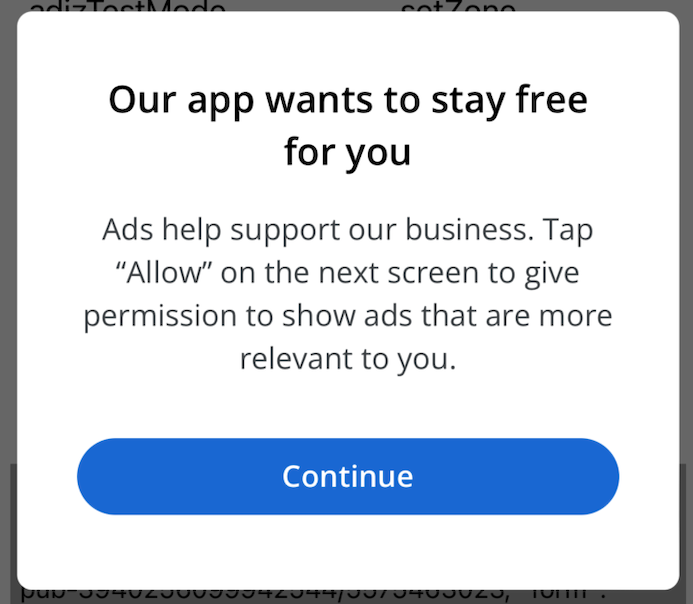 * Android 로그 예시 : Use new ConsentDebugSettings.Builder().addTestDeviceHashedId("ABCDEFGHIJKLMNOPQRSTUVWXYZ") to set this as a debug device.