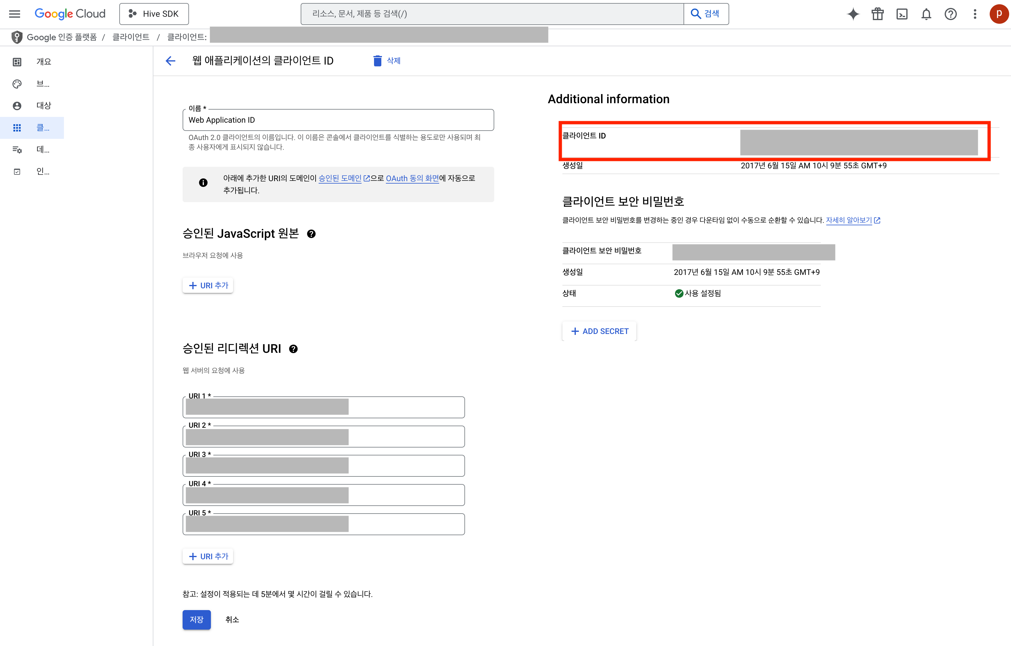 Google Cloud 콘솔에서 발급받은 웹 애플리케이션 클라이언트 ID를 설정합니다.