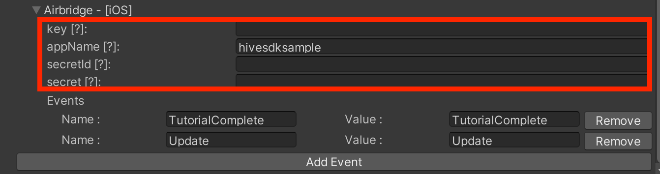 <Airbridge name="Airbridge" key="APP_SDK_TOKEN" appName="APP_NAME" secretId="SECRET_ID" secret="SECRET">
