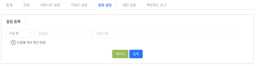 - 알림 서비스를 사용하고 싶을 경우 알림 설정 탭에서 알림 서비스를 등록한 후 사용할 수 있습니다.
