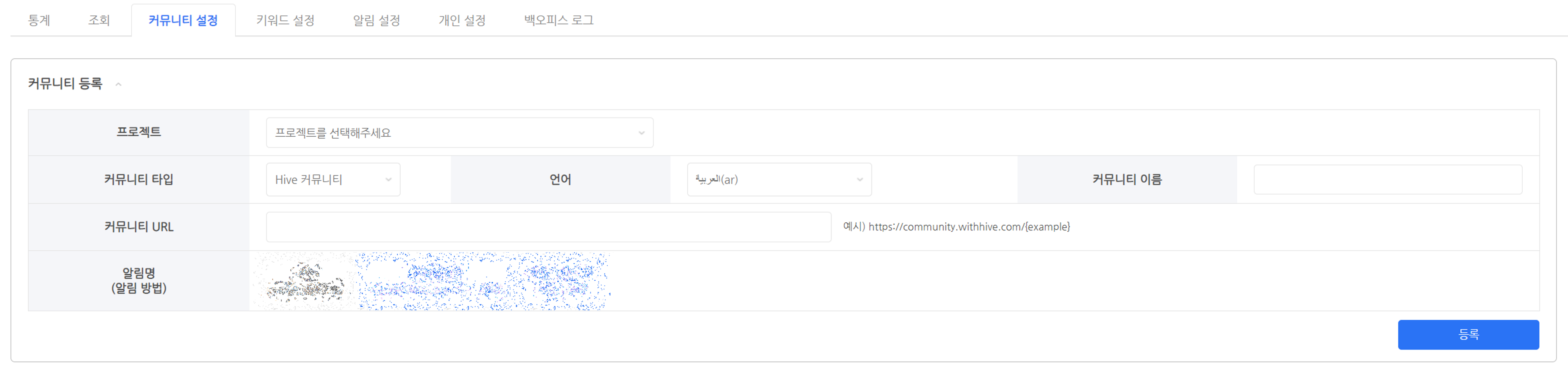 - 커뮤니티 설정 탭에서 커뮤니티를 등록합니다.