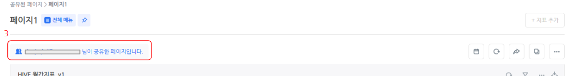 - 공유된 페이지인 경우, 페이지 상단에 공유자가 노출됩니다.