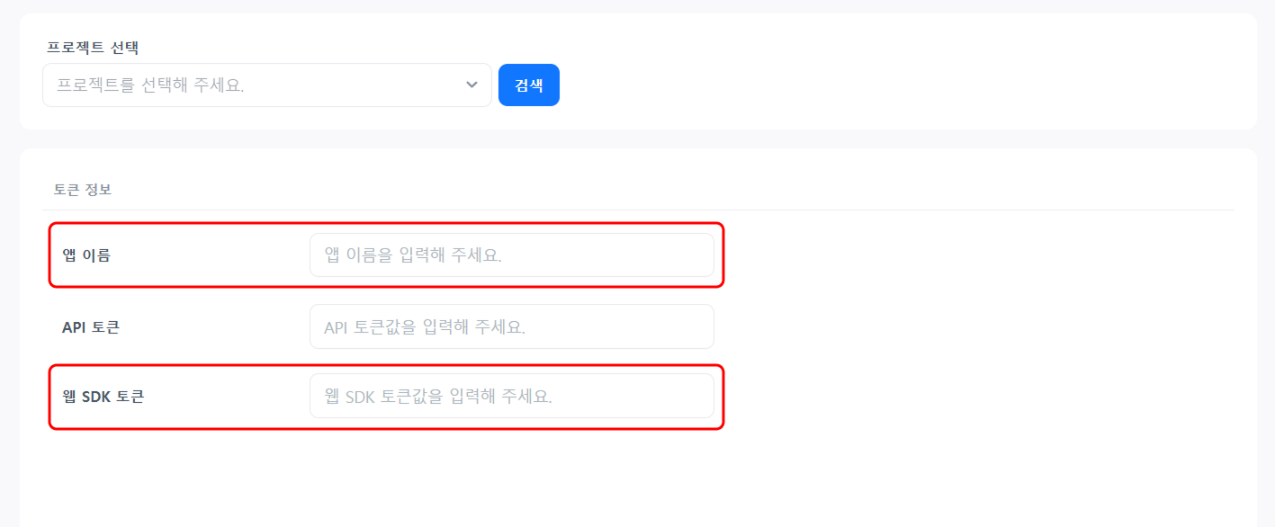 메뉴 : 마케팅 어트리뷰션 > 에어브릿지 설정 > 앱 이름, 웹 SDK 토큰 입력