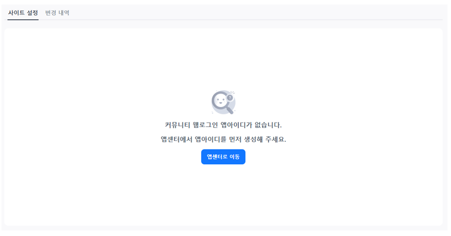 커뮤니티 웹 로그인 앱아이디가 없으면 앱센터에서 생성해 주세요. 자세히 보기