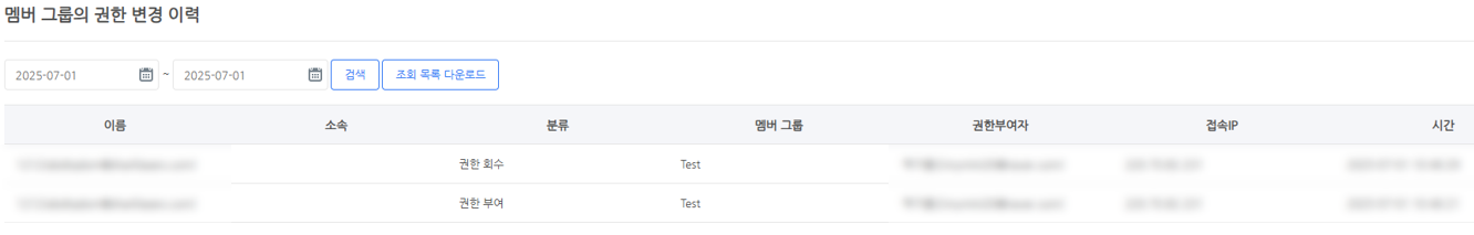 멤버 계정의 권한 변경 이력¶