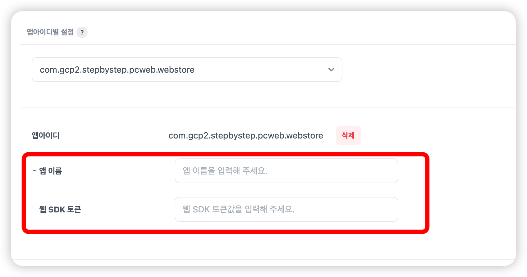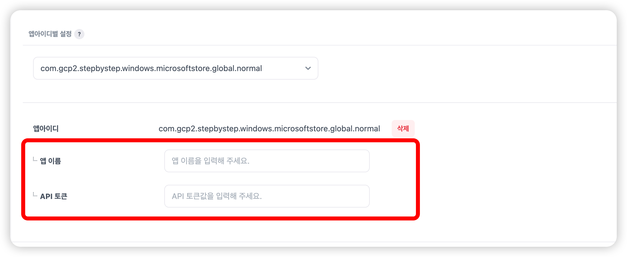 선택한 앱아이디별로 토큰 정보를 다르게 지정할 수 있습니다.