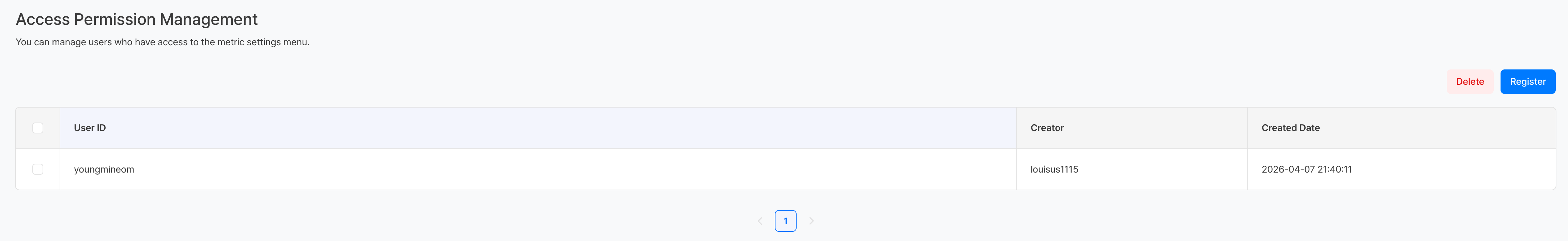 - เมื่อตั้งค่าสภาพแวดล้อมเริ่มต้น ให้ลงทะเบียนสิทธิ์การเข้าถึงสำหรับผู้รับผิดชอบล่วงหน้า เพื่อให้สามารถมอบหมายการจัดการการตั้งค่าตัวชี้วัดได้ในภายหลัง