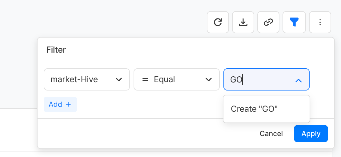 รายการที่แสดงในมิติของตัวกรองจะเป็นแอตทริบิวต์ของอีเวนต์ทั้งหมดที่ใช้ หากอีเวนต์ใดไม่มีแอตทริบิวต์นั้น ตัวกรองจะไม่ถูกใช้กับอีเวนต์นั้น
