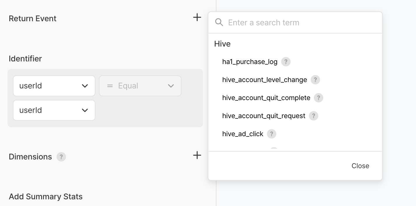 hive_app_login→ จัดผู้ใช้ที่ล็อกอินในช่วงเวลานั้นเป็นโคฮอร์ต - ตัวอย่าง: