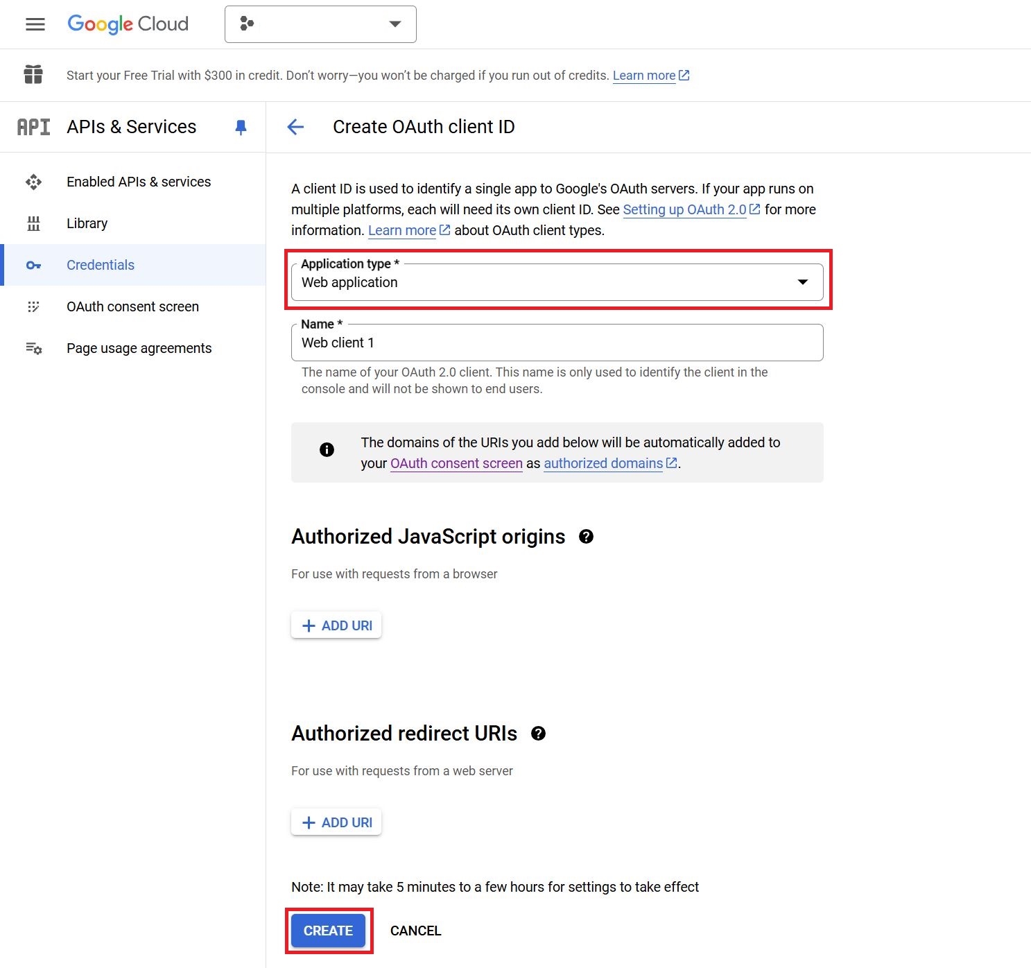• สร้างข้อมูลรับรองผู้ใช้ใน Google Cloud Console