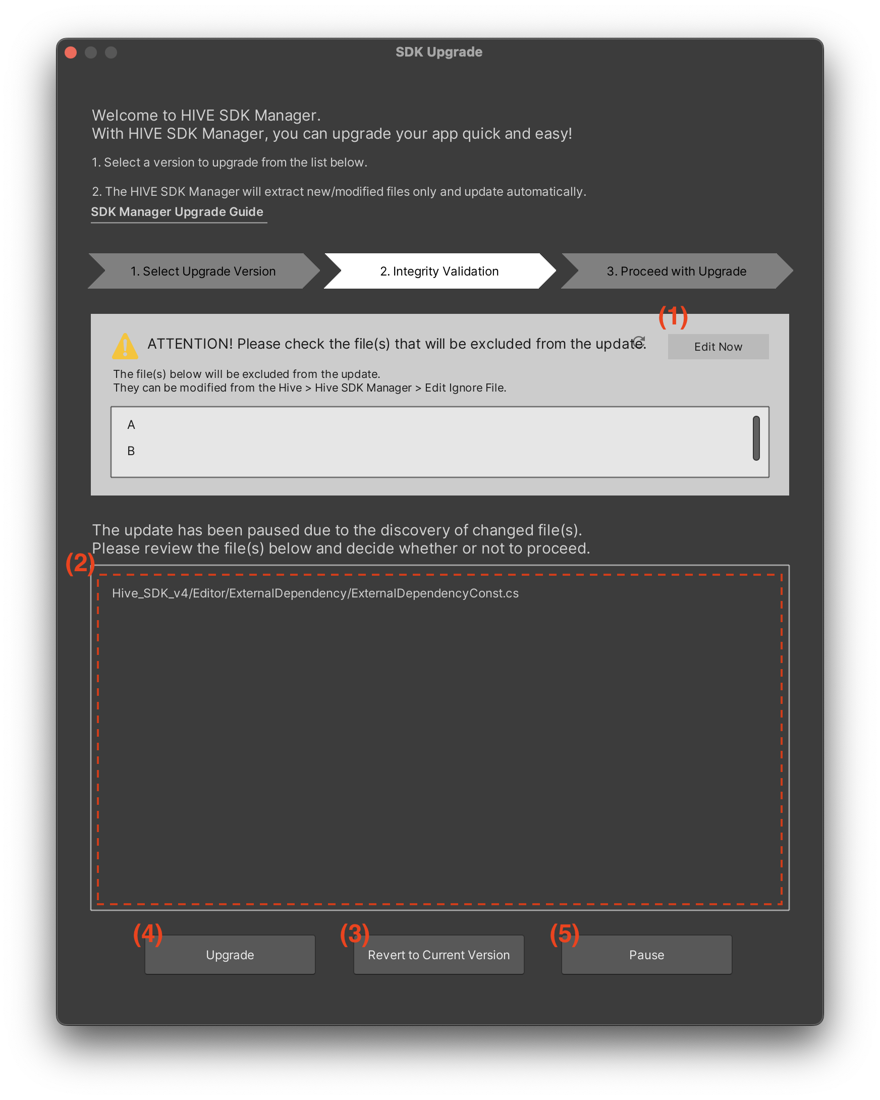 เลือกไฟล์ที่จะยกเว้นจากการอัปเกรดจากไฟล์ที่กำหนดในแพ็คเกจ Hive SDK v4 Unity การคลิกที่ Edit Now จะเปิดไฟล์บันทึกที่คุณสามารถสร้างรายการไฟล์ที่จะยกเว้นจากการอัปเกรดได้ จากนั้นคุณสามารถแก้ไขและบันทึกไฟล์บันทึกได้