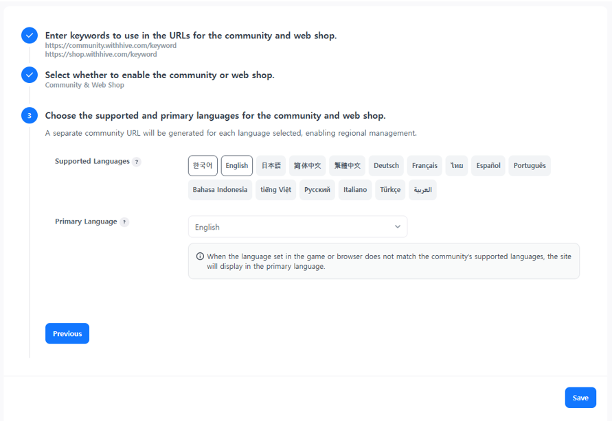 - ภาษาที่รองรับ: เลือกภาษาทั้งหมดที่เว็บไซต์ชุมชนหรือร้านค้าออนไลน์จะรองรับสำหรับลูกค้า
