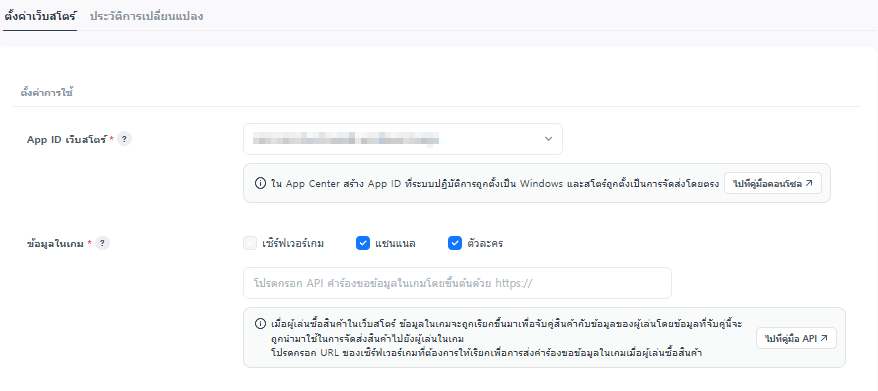 - กรุณาใส่ URL ของเซิร์ฟเวอร์เกมที่จะเรียกใช้เพื่อวัตถุประสงค์ในการสอบถามข้อมูลในเกมเมื่อผู้ใช้ทำการซื้อผลิตภัณฑ์