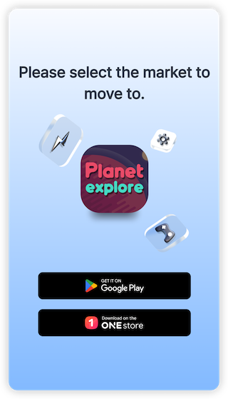 - Android, iOS: เปลี่ยนเส้นทางไปยังลิงก์ตลาดที่ป้อนใน 'การจัดการลิงก์ตรง > การตั้งค่า' หากเลือก Google Play และ Onestore สำหรับ Android ทั้งคู่ จะมีหน้าเลือกตลาดให้ผู้ใช้ (ดูภาพ)