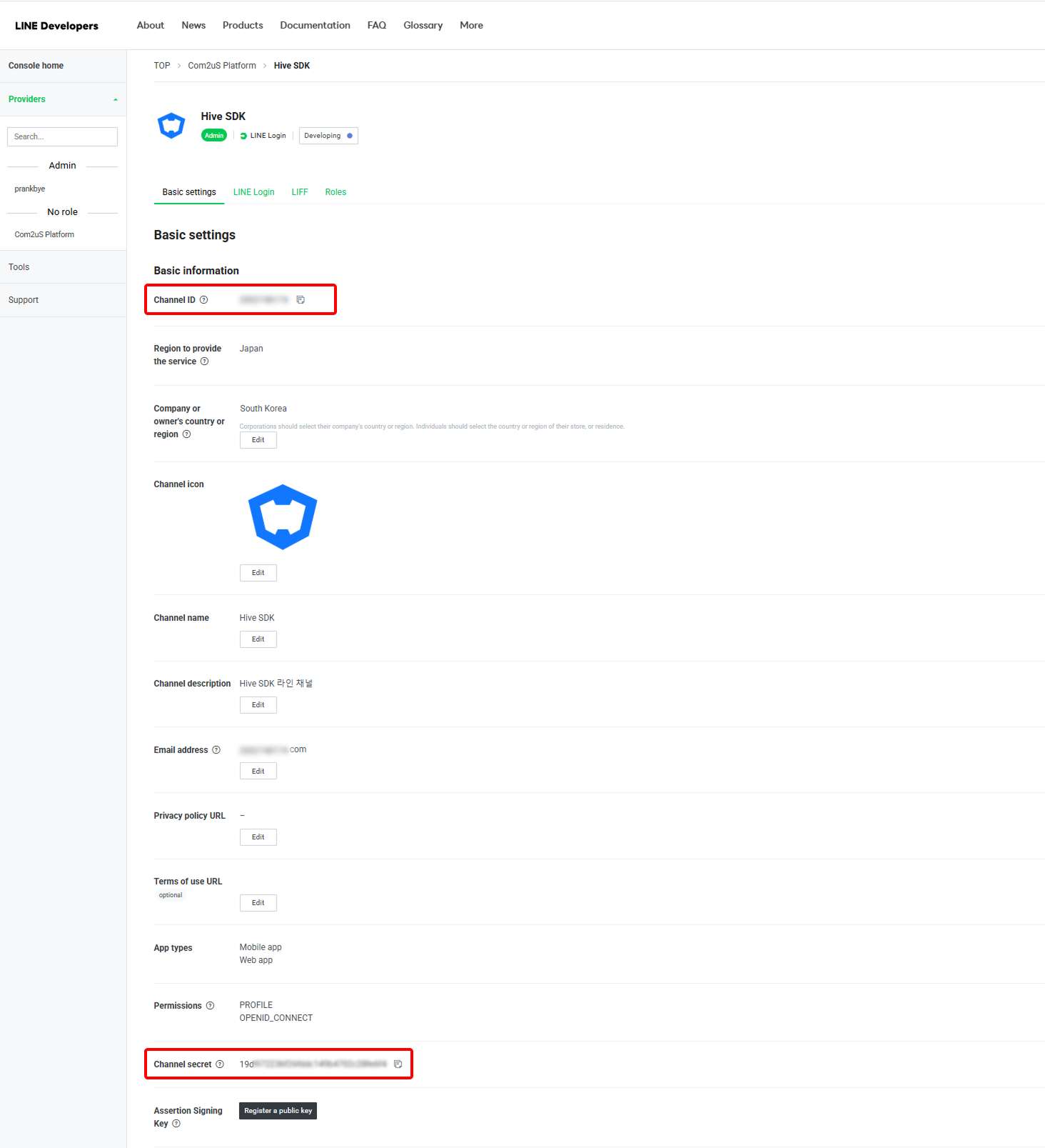 要使用 LINE 登入進行網頁登入,請參考以下資訊以找到您的頻道 ID 和頻道密鑰,然後在登入設定菜單中註冊它們。