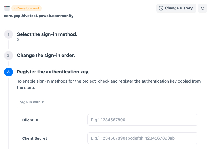 - 複製各個商店提供的驗證金鑰,並將其粘貼到登入設定頁面。請注意,並非所有登入方式都需要在登入設定菜單中註冊驗證金鑰;某些必須直接在 Hive SDK 中註冊。以下提供了有關為每個商店註冊驗證金鑰的詳細說明。