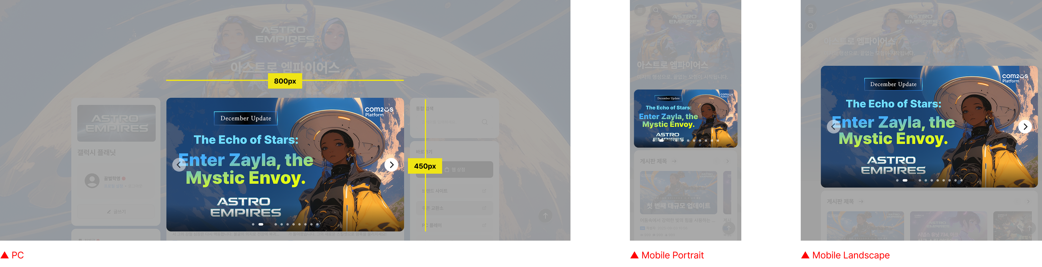 - 橫幅分為主要橫幅和主要彈出橫幅,兩者均可在與遊戲主橫幅相同的解析度(800*450px)下使用。