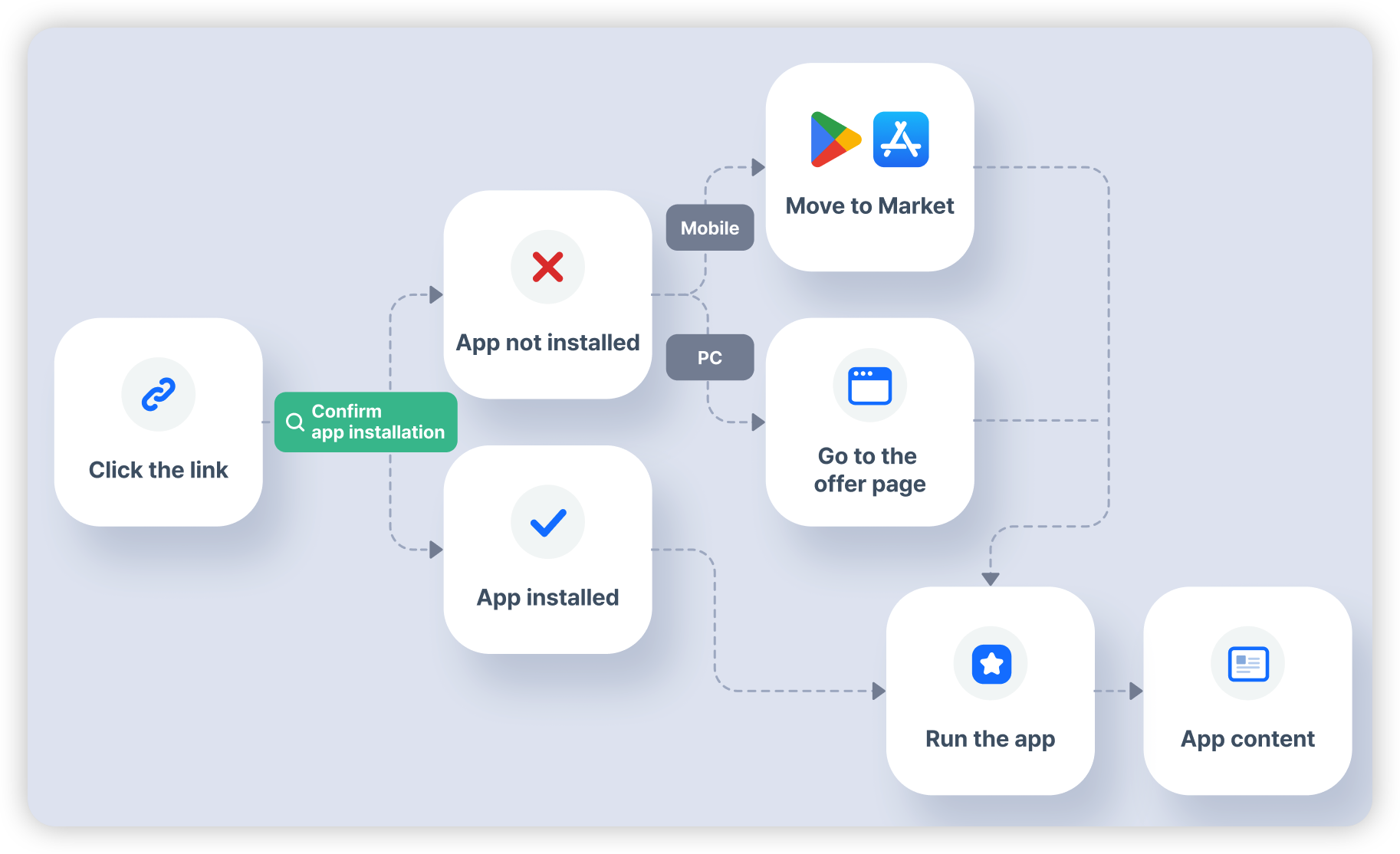 - 當點擊直接鏈接時,已安裝應用的用戶將直接進入應用內的指定目的地。