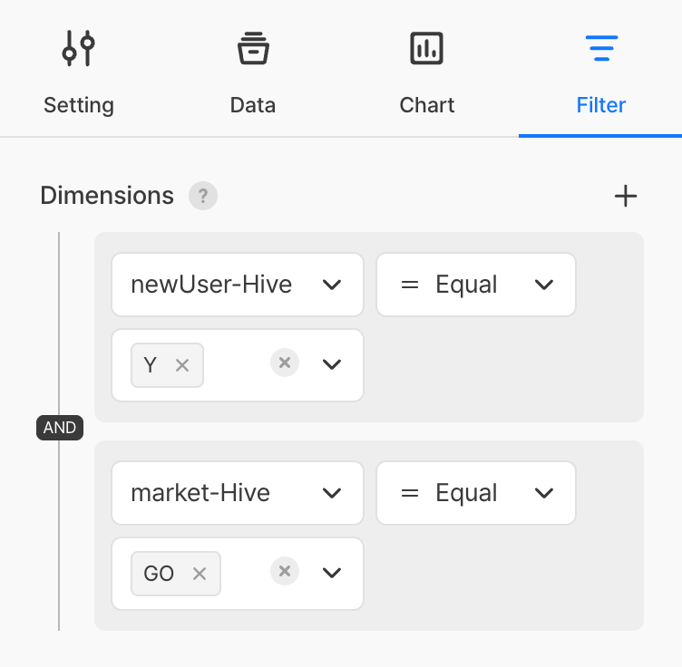 | 等於 | 只包含與輸入值完全相符的資料。例:只看國家為「韓國」、「日本」的使用者 |