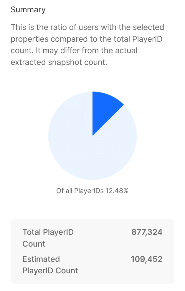 在建立快照前確認預估使用者數與相對於全部使用者數的占比(%)的功能。 若未達預期,可確認是哪個條件導致使用者流失。
