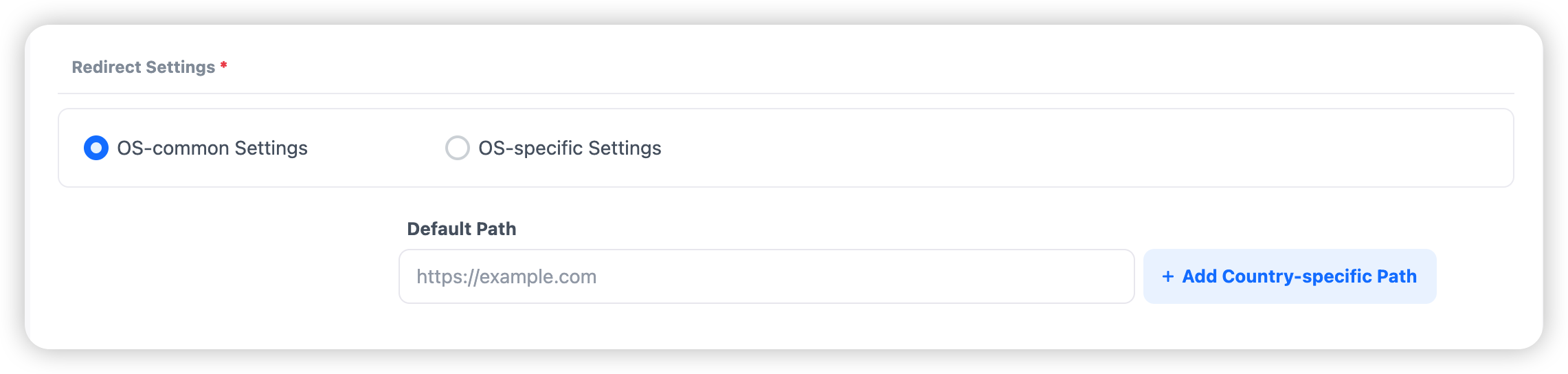 - 點擊「新增國家特定路徑」按鈕以為每個國家設置不同的目的地 URL。