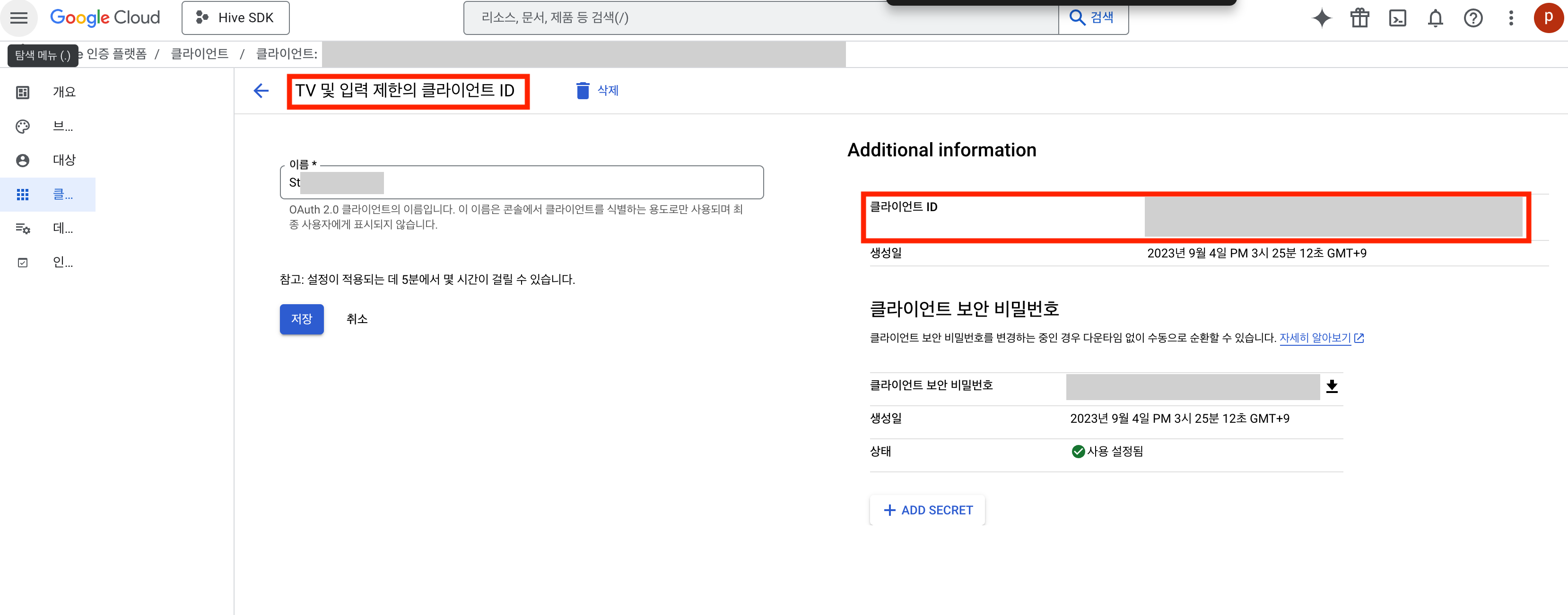 設定從Google Cloud Console發出的客戶端類型的客戶端 ID。