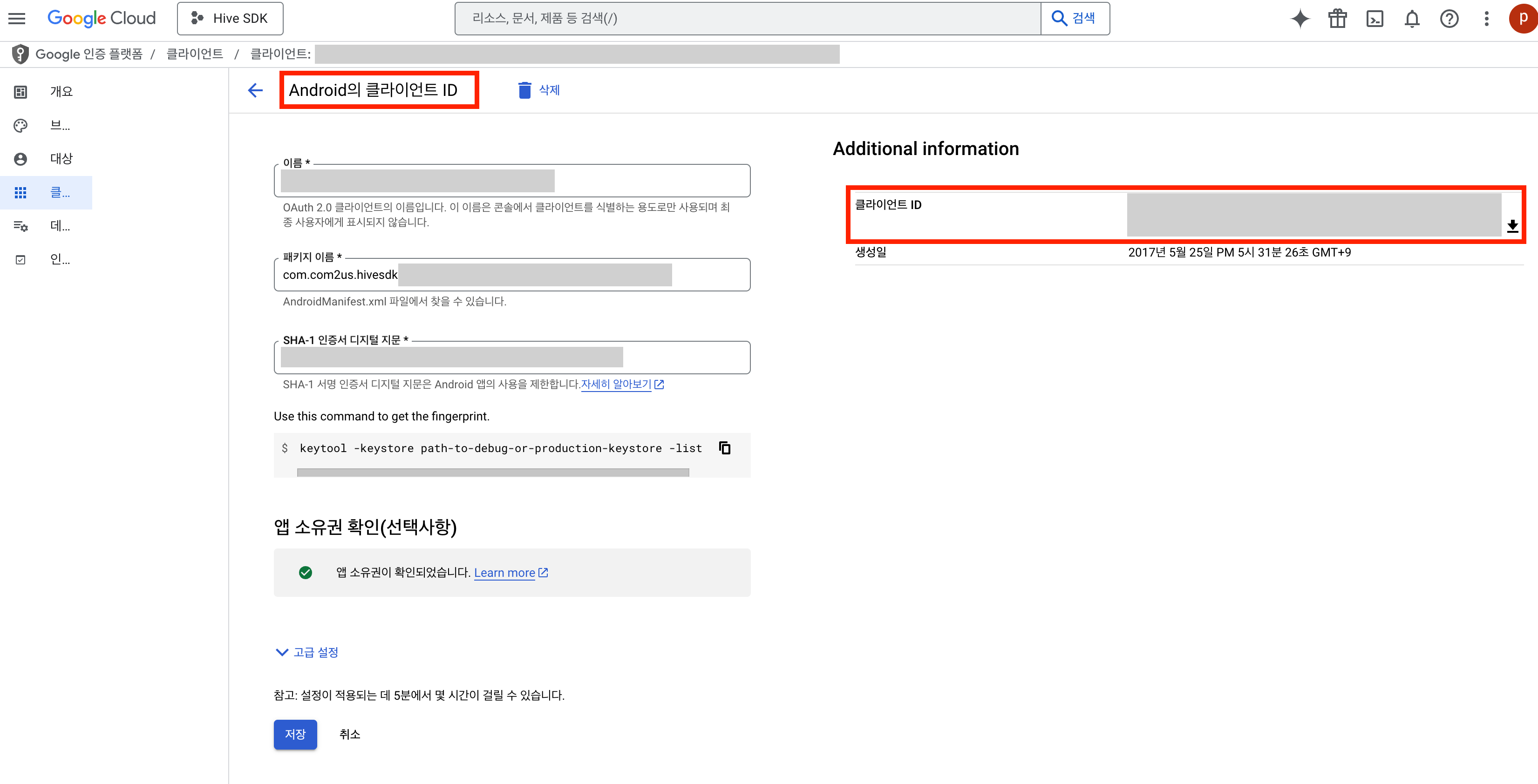 設定從Google Cloud Console發出的Android類型客戶端ID。