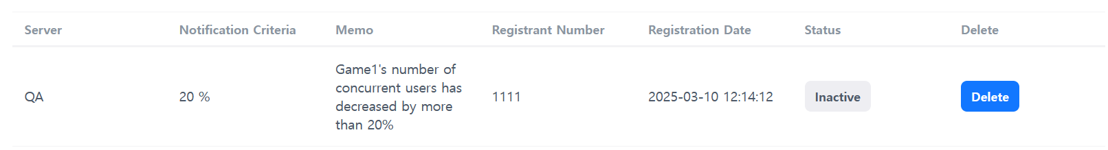 通知標準:同時連接者數量每4分鐘檢查一次並進行匯總。如果與之前的數字相比,減少比例低於設定的通知標準,則會發送通知。