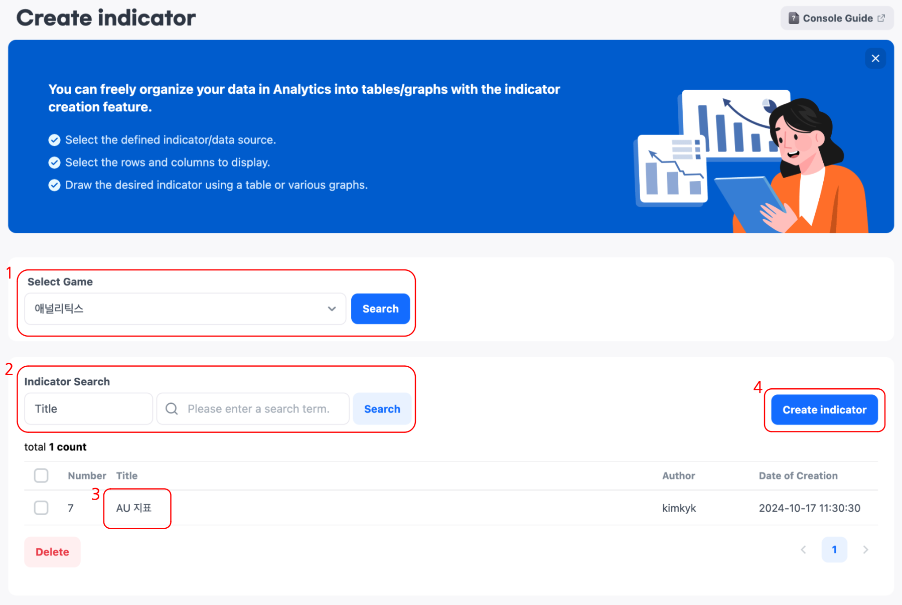 - 點擊創建指標按鈕以移動到創建新指標的畫面。