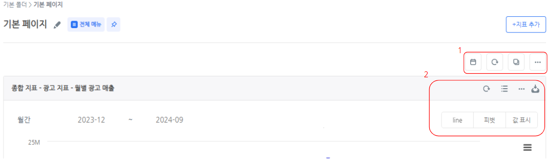 1. "使用指標頁面右上角的按鈕來訪問各種功能。